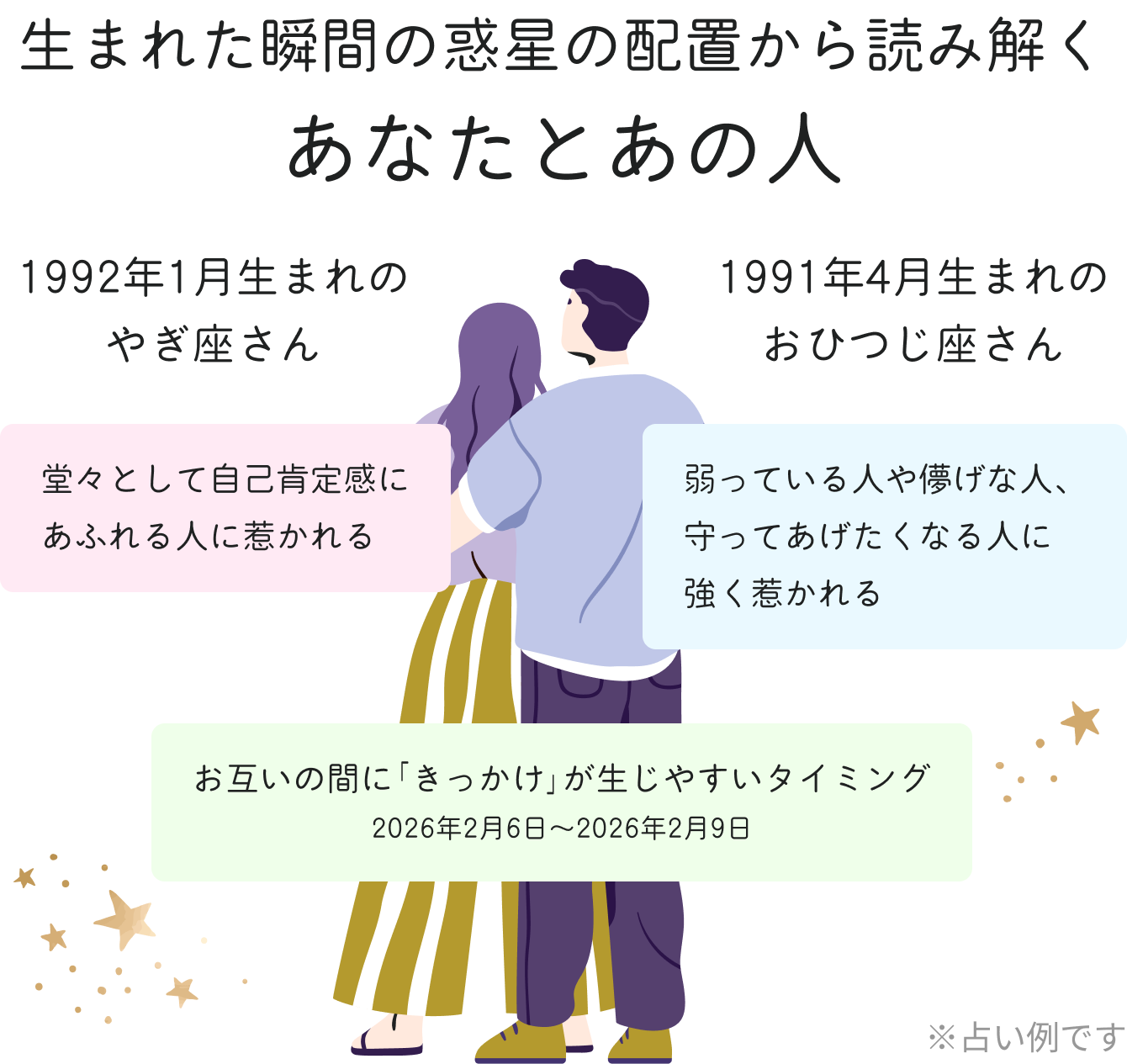 2人が生まれた瞬間のホロスコープから2人の関係性と未来を、石井ゆかりさんが読み解きます。